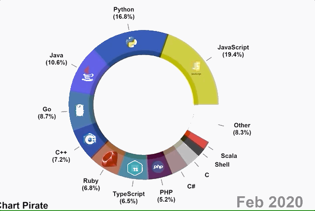 最近,一位博主PieChartPirate统计了从2012年6月-2020年6月GitHub上最受欢迎的编程语言,看到了整个语言的变迁史,一直稳居第一宝座的是JavaScript。