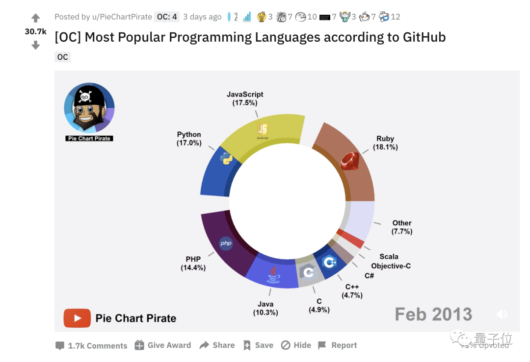 我从GitHub上看到了编程语言八年变迁史 | Reddit 30.7k