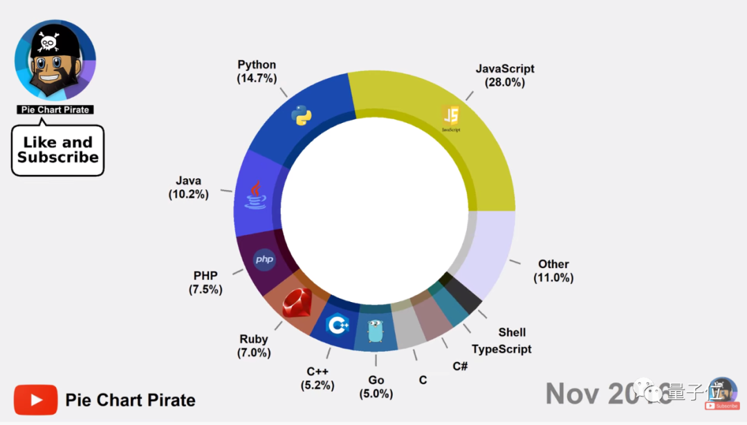 而JavaScript学习成本低、应用场景多,地位逐渐得以彰显,甚至一度占据到了 28% 的份额。