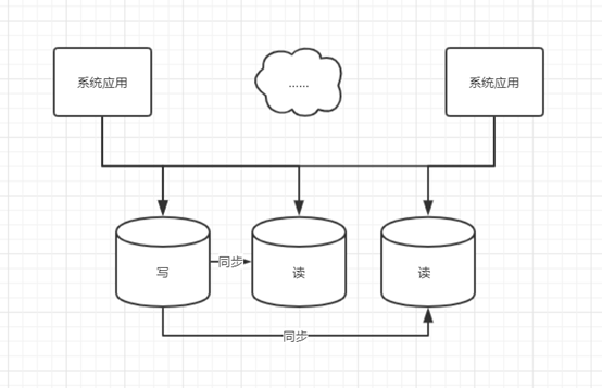 办法总比问题多,随着互联网技术的发展,以及一代代互联网人对互联网的深入研究,人们发现在互联网的系统应用是一个读多写少的应用,比如电商系统,商品浏览的次数是比下单要多的。数据库承载压力大,主要是由这些读的请求造成的,那么我们是不是可以把读操作和写操作分开,让所有读的请求落到专门负责读的数据库上,所有写的操作落到专门负责写的数据库上,写库的数据同步到读库上,这样保证所有的数据修改都可以在读取时,从读库获得,系统的架构如图所示: