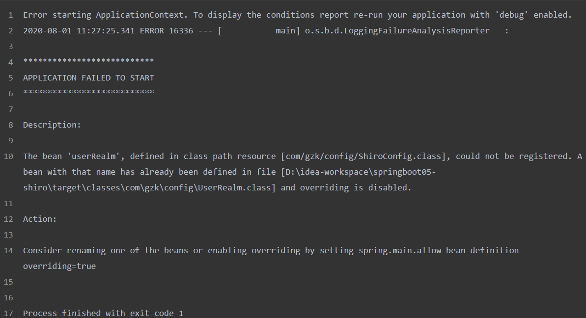 错误1:APPLICATION FAILED TO START