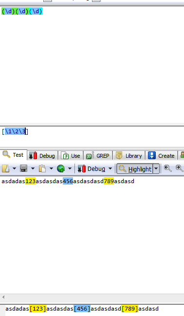 "["|"]"为单纯的字符,表示添加"["或"]",如果输入"其它\1\2\3其它",则替换结果为: