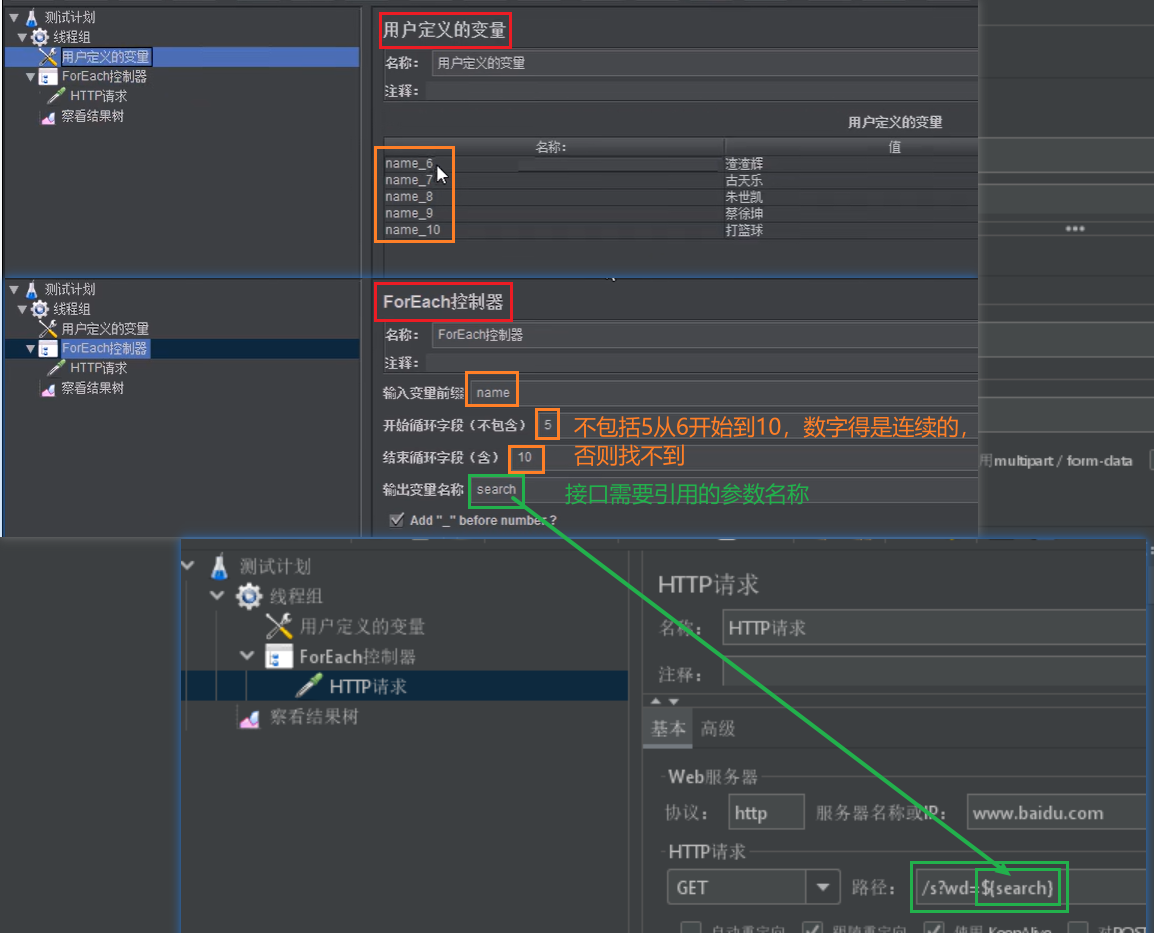 foreach控制器一般和用户定义的变量一起使用,在用户自定义变量中读取一系列相关的变量