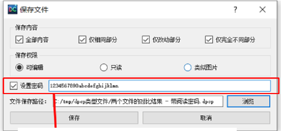 设置密码:在保存.dpcp文件时勾选"设置密码"选项,输入并确认密码。
