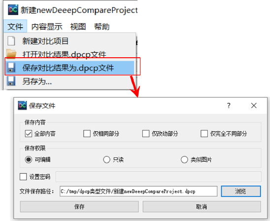 保存对比结果为.dpcp项目文件是DeepCompare的核心功能之一,操作流程简单直观: