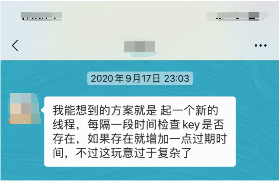3、比如锁过期 30 秒, 每过 1/3 时间也就是 10 秒会检查锁是否存在, 存在则更新锁的超时时间