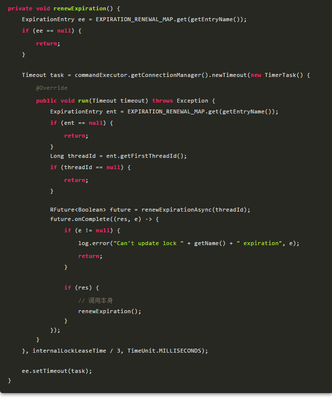 现在回过头看一下获取到锁之后, 是如何为锁进行延期操作的