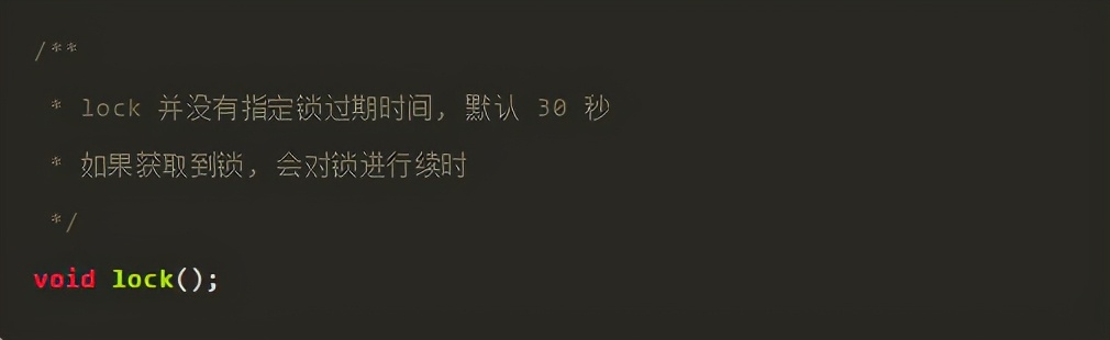 由于获取锁的 API 较多, 我们这里以 lock() 做源码讲解, 看接口定义相当简单