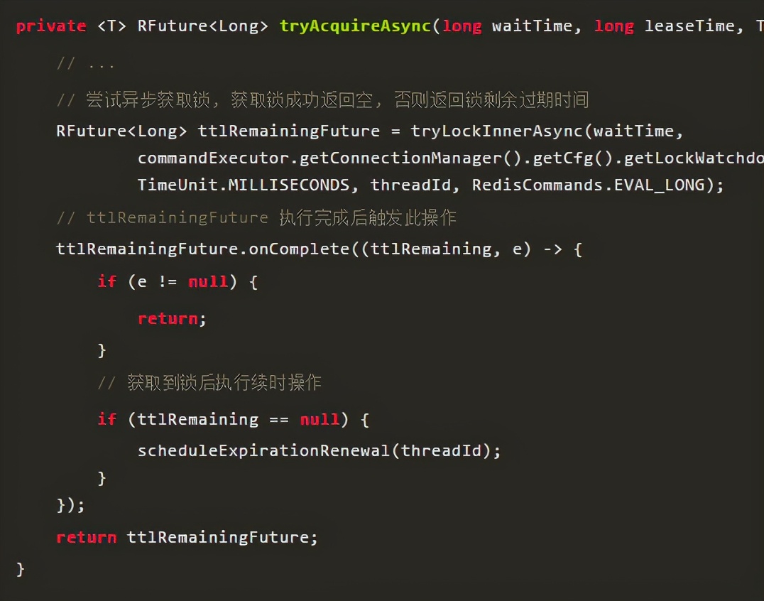 我可真是个暖男, 上代码 RedissonLock#tryAcquireAsync(...)