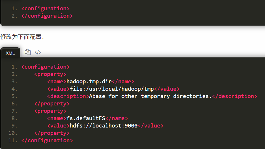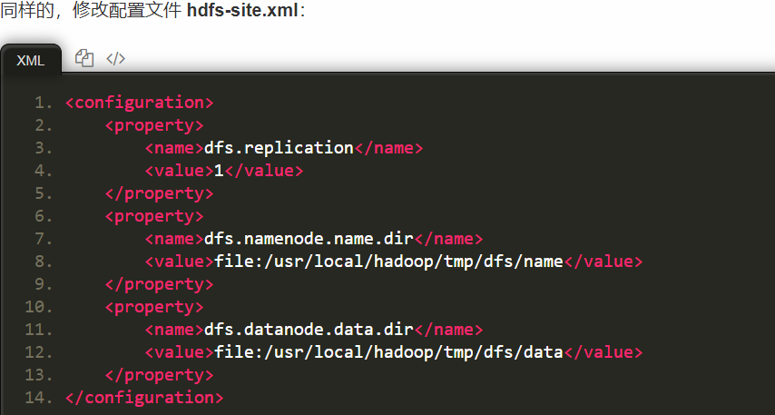 通过 gedit 编辑core-site.xml文件: gedit ./etc/hadoop/core-site.xml
