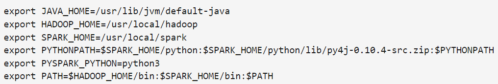 PYTHONPATH环境变量主要是为了在Python3中引入pyspark库,PYSPARK_PYTHON变量主要是设置pyspark运行的python版本。