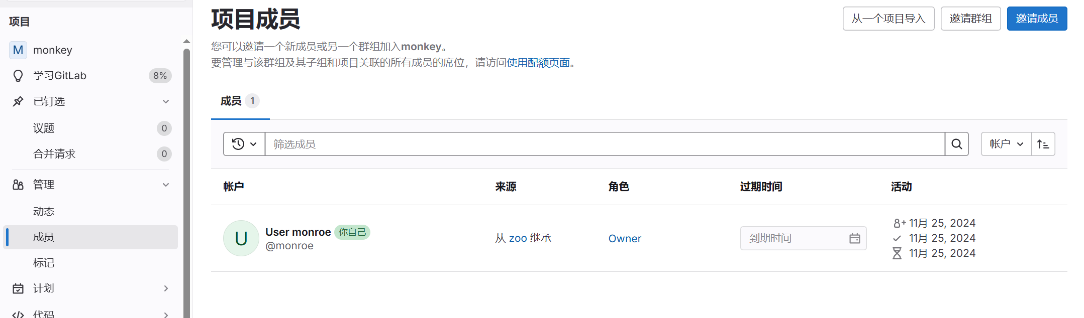git clone 远程项目地址 -- 克隆远程仓库,项目地址可在gitlab的项目信息下方看到