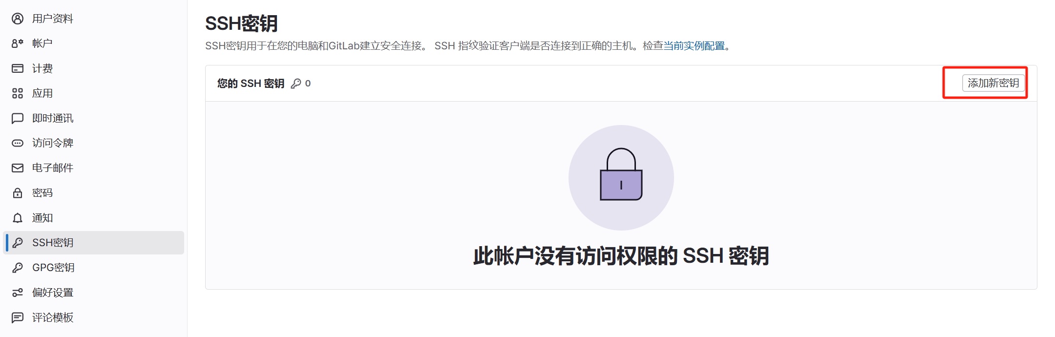 第一个问题输入生成的密钥文件的路径,后两个直接回车跳过,然后打开生成文件路径下的.pub文件,将文件内容复制并粘贴至gitlab添加即可。