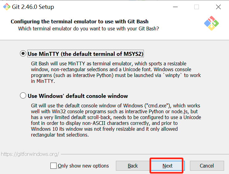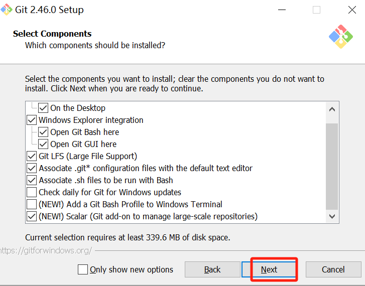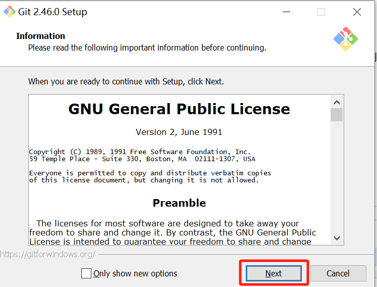 在本地打开Git-2.46.0-64-bit.exe软件,比较简单,一般是默认下一步即可。