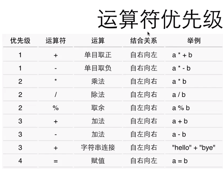 计算的优先级:这是计算运算符的优先级,这个优先级是什么意思,通俗点比如在数学里是不是先算加减乘除,这就是优先级,优先级没那么复杂,就是优先算哪个