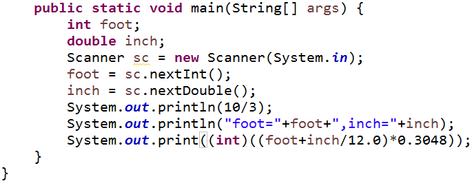 你看inch后面的结果是不是还有小数点啊,这就需要我们进行类型转换,类型转换分为:自动类型转换和强制类型转换