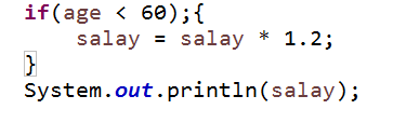 但是,如果你加上了双引号;这个双引号的意思是如果age小于60的话,这个if它什么也不做,那后面两个大括号是什么,在代码里它本来