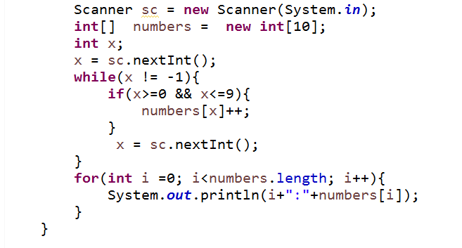 让我们更加有效的去理解数组的下标是怎么回事,这个就是我们投票统计的代码,在scanner下面的那个代码