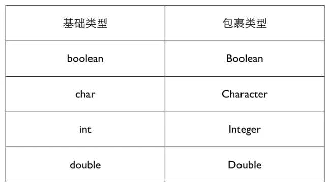 包裹类型:包裹类型有四种,每一种基础类型都对应的一个包裹类型,包裹类型有: