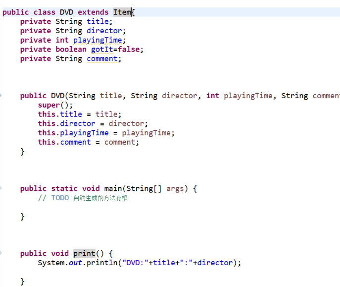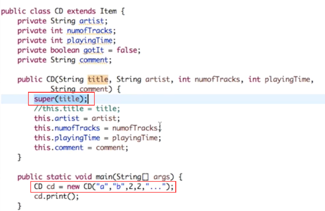 父类 Item 中定义的东西,CD、DVD 这些子类会天然的继承得到那些东西,父类中的所有东西在子类中都是可能可以用的,可能是因为访问权限的问题,一会再说
