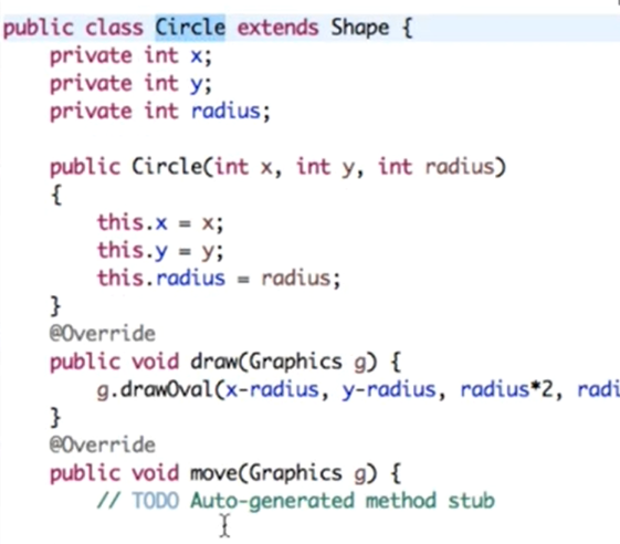 如果不想实现 move 方法也行,那我们应该,将该子类变为抽象