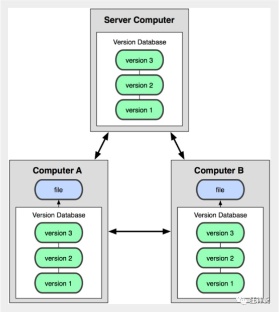 所有版本信息仓库全部同步到本地的每个用户,这样就可以在本地查看所有版本历史,可以离线在本地提交,只需在连网时push到相应的服务器或其他用户那里。