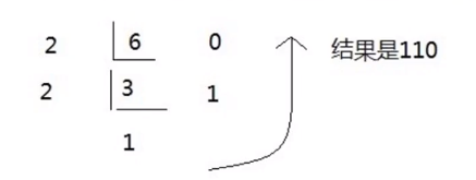 十进制数字6转成二进制,除以2获取余数