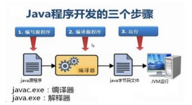 程序开发步骤说明 开发环境已经搭建完毕,可以开发我们第一个Java程序了。 Java程序开发三步骤:编写、编译、运行