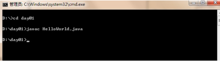编译成功后,命令行没有任何提示。打开 d:\day01 目录,发现产生了一个新的文件 HelloWorld.class ,该文件 就是编译后的文件,