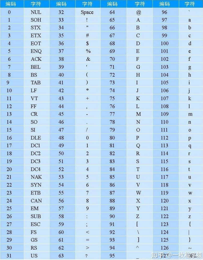 Unicode码表:万国码。也是数字和符号的对照关系,开头0-127部分和ASCII完全一样,但是从128开始包含有更多字符