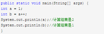 变量 后++ :变量a先把自己的值1,赋值给变量b,此时变量b的值就是1,变量a自己再加1。a的结果是2,b 的结果是1