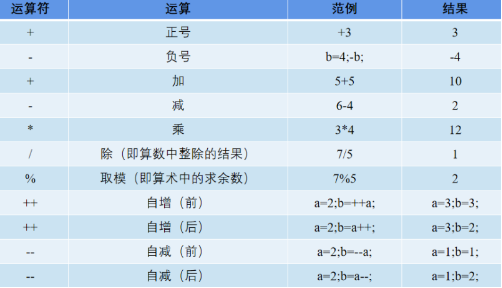 算术运算符加号的多种用法和算术运算符自增自减运算符
