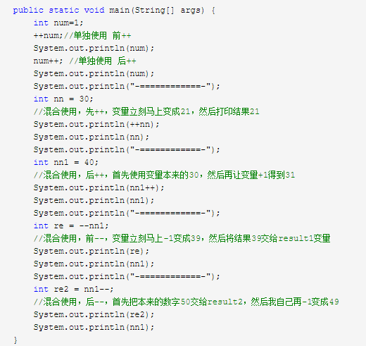 2.如果是 后++,那么首先使用变量本来的数值,然后再让变量+1。【先用后加】