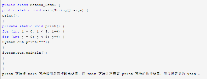 前面的课程中,使用过嵌套循环输出矩形,,控制台打印出矩形就可以了,因此将方法定义为 void ,没有返回值。 在主方法 main 中直接被调用。