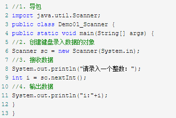 int i = sc.nextInt(); // 接收一个键盘录入的整数