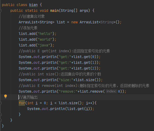 2.public E remove(int index) :移除此集合中指定位置上的元素。返回被删除的元素。