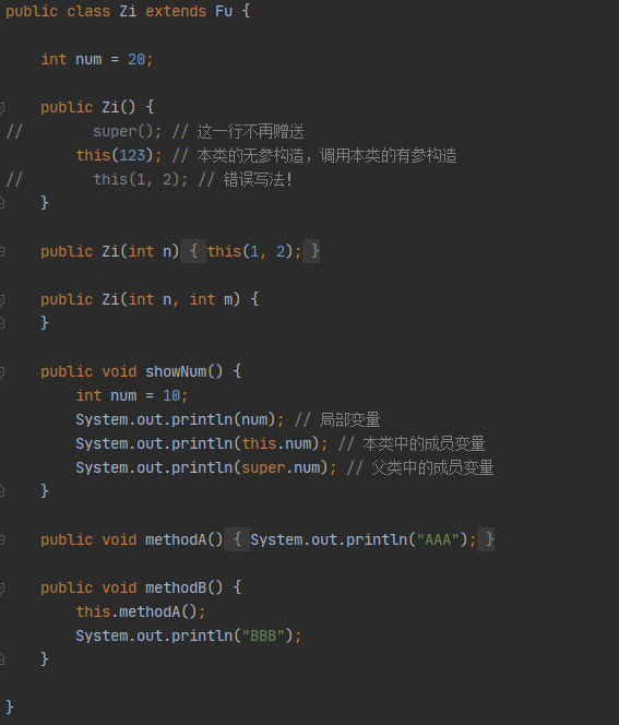 3.在本类的构造方法中,访问本类的另—个构造方法。