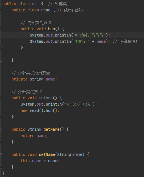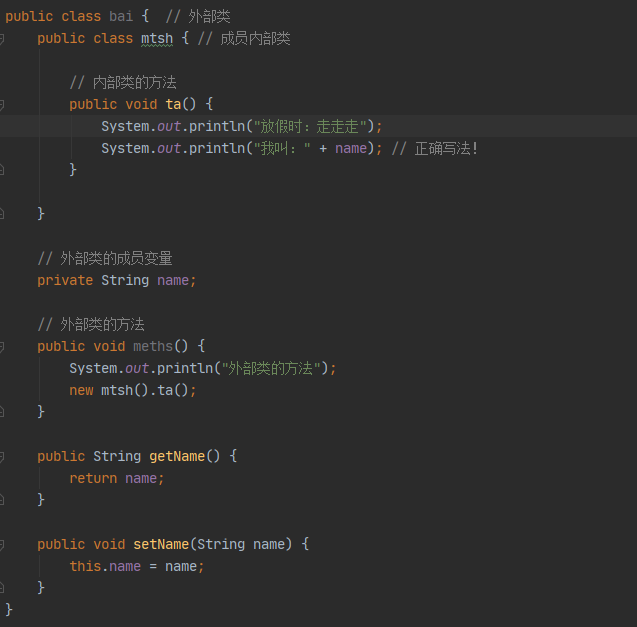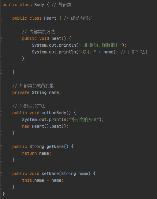 注意:内用外,随意访问;外用内,需要内部类对象。