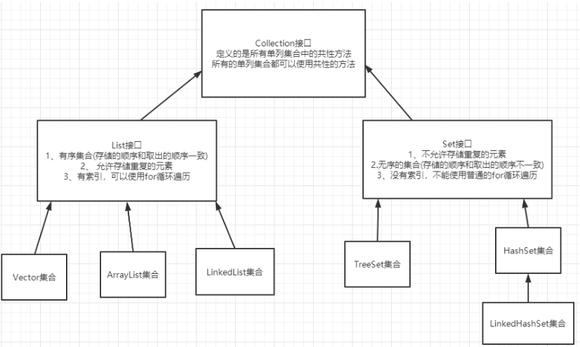 Collection:单列集合类的根接口,用于存储一系列符合某种规则的元素,他有两个重要的子接口,分别是List和Set。