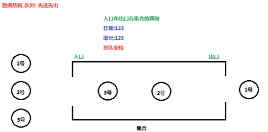 先进先出(即,存进去的元素,要在后它前面的元素依次取出后,才能取出该元素)。例如,小火车过山洞,