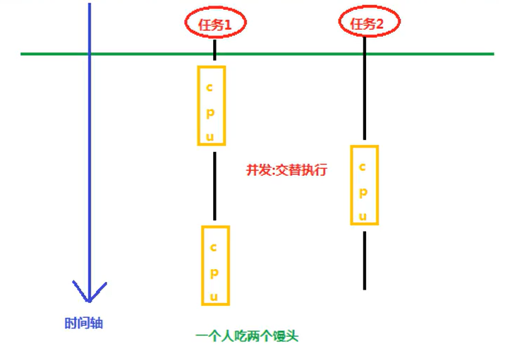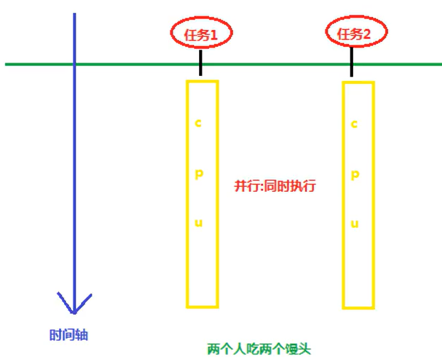 并行︰指两个或多个事件在同一时刻发生(同时发生)。