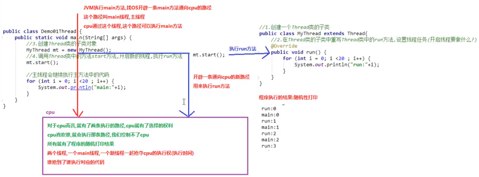 结果是两个线程并发地运行:当前线程(main线程)和另一个线程(创建的新线程,执行其run方法)。