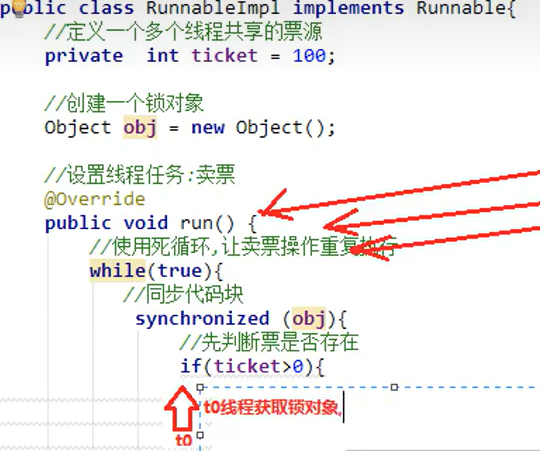 一直到t0线程执行完同步中的代码块,会把锁对象归还给同步代码块