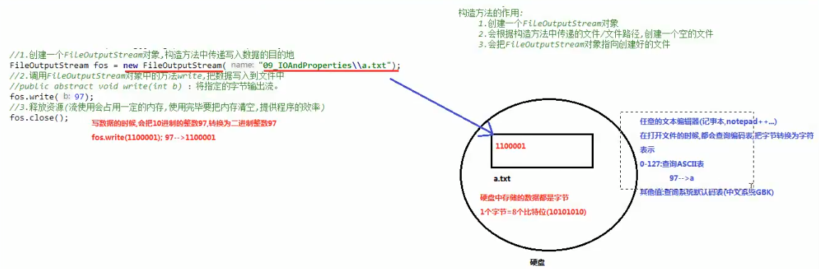 字节输出流写入数据到文件,文件存储的原理和记事本打开文
