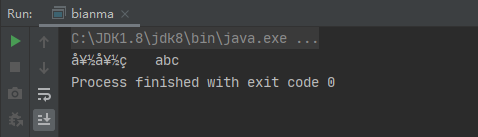 /** * 使用字节流读取中文文件 * 1个中文 * GBK:占用两个字节 * UTF-8:占用3个字节 */ public class bianma { public static void main(String[] args) throws IOException { //1.创建FileInputStream对象,构造方法中绑定要读取的数据源 FileInputStream stream = new FileInputStream("ku.txt"); //2.使用FileInputStream对象中的方法read,读取文件 //int read()读取文件中的一个字节并返回,读取到文件的末尾返回-1 int a; while ((a=stream.read()) !=-1){ System.out.print((char)a); } //释放资源 stream.close(); } }