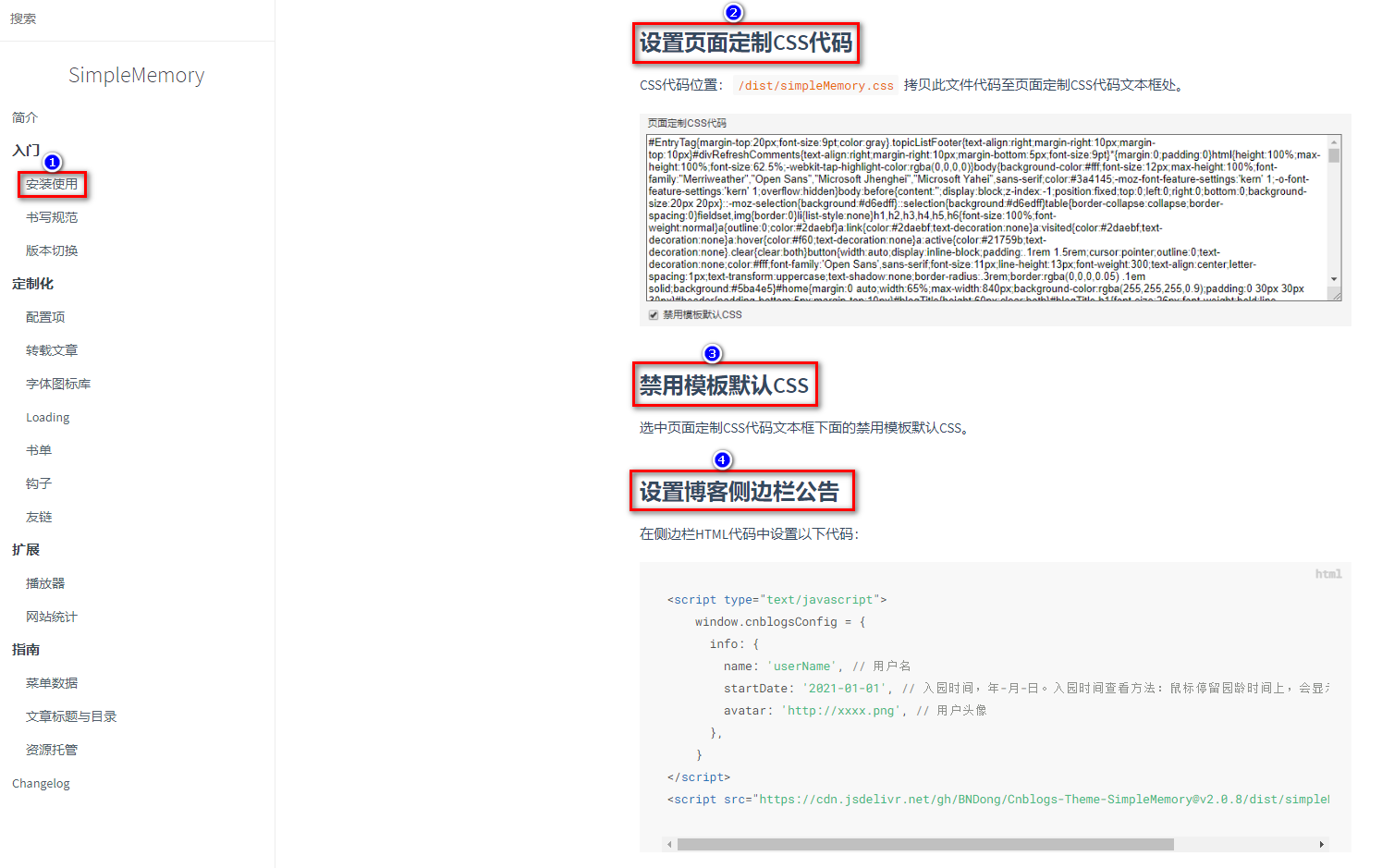 参考页面样式美化教程:https://bndong.github.io/Cnblogs-Theme-SimpleMemory/v2/#/Docs/GettingStarted/install