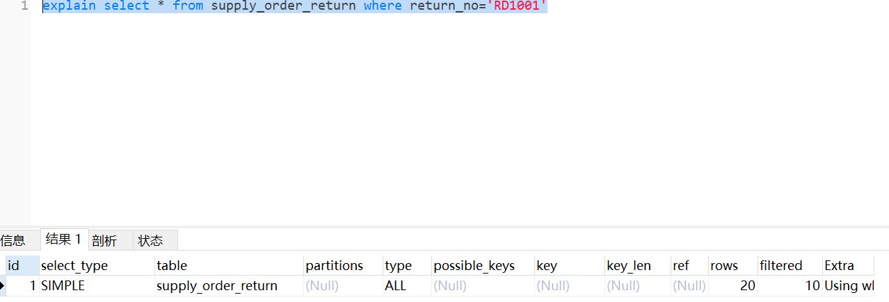 下面我们就直接开始演示如何把自己写的sql是否走索引了
