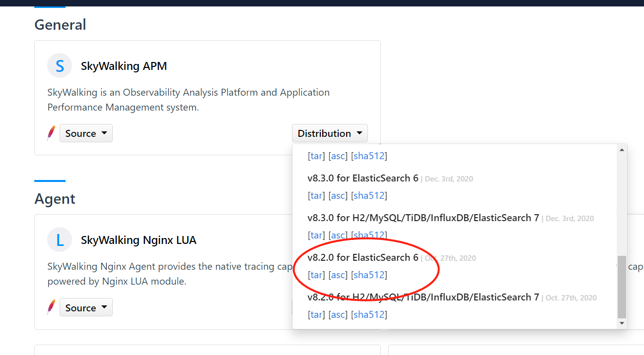 第一步下载skywalking :http://skywalking.apache.org/downloads/