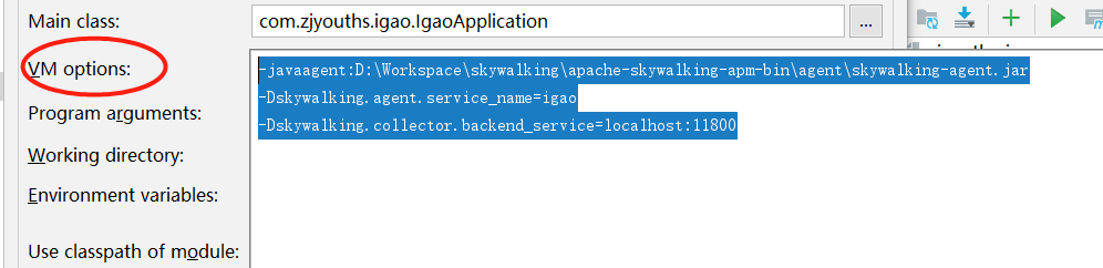 -javaagent:D:\Workspace\skywalking\apache-skywalking-apm-bin\agent\skywalking-agent.jar