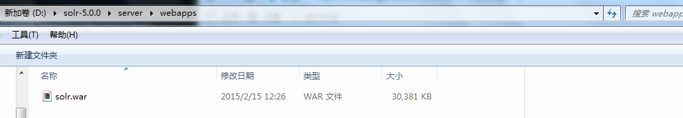 第三种启动方式:在tomcat中启动,我们只需要把server目录中的webapps下的solr.war取出来放入tomcat的webapp目录就行